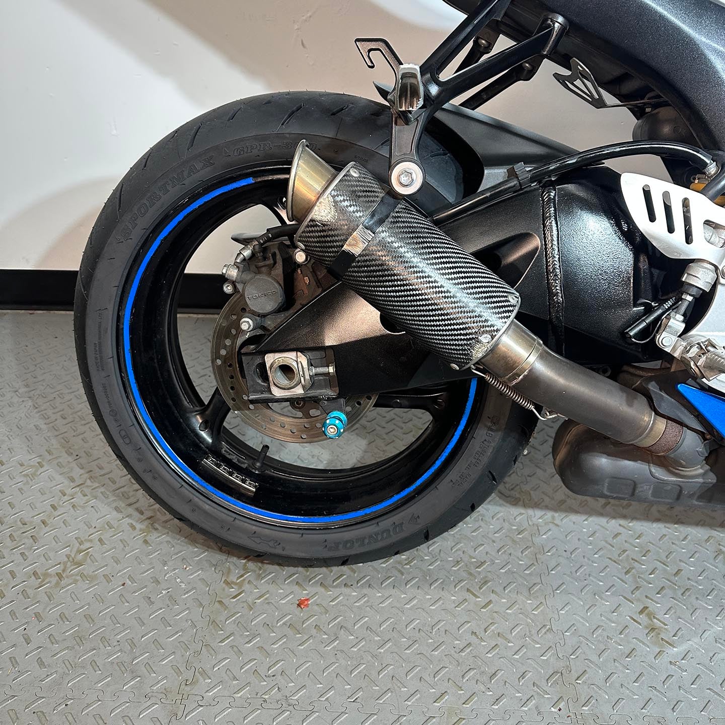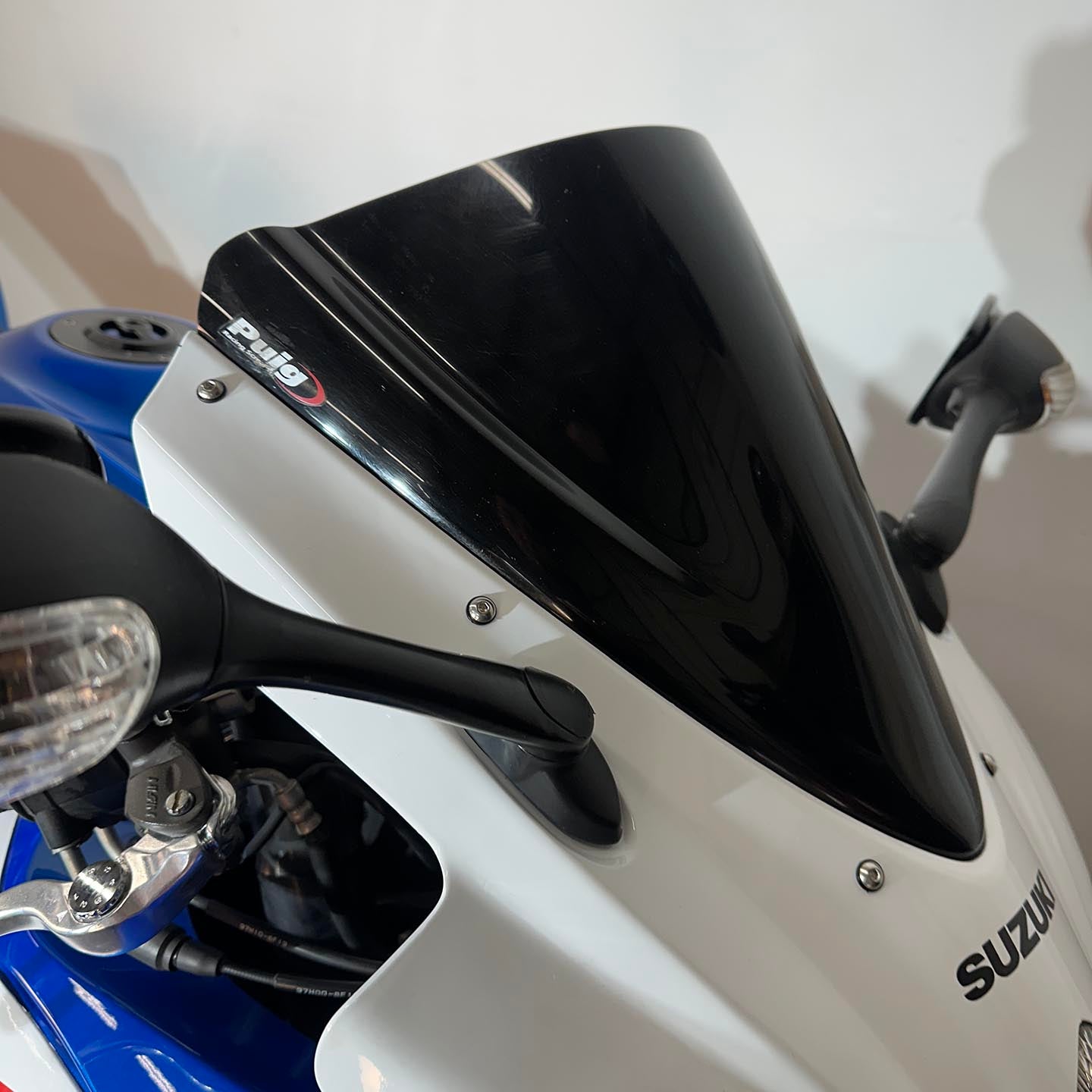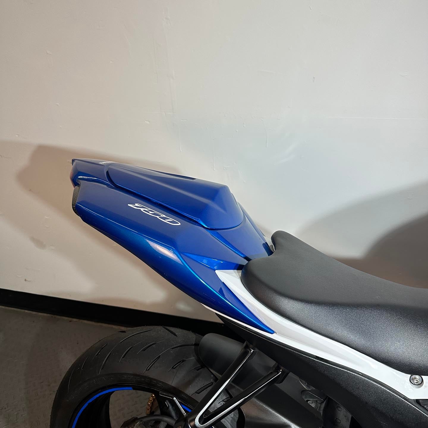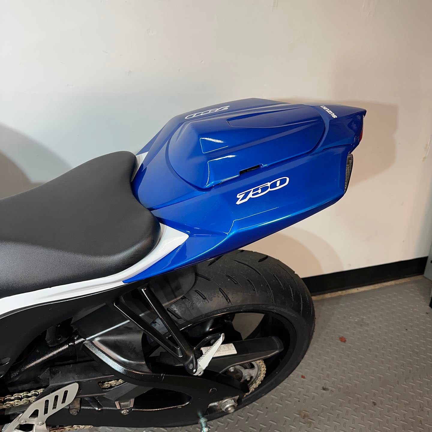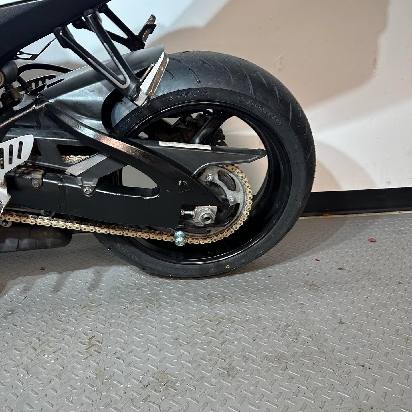 It has a carbon fiber slip on exhaust installed. A fender eliminator kit has been fitted. A tall Puig windscreen has been installed. Pro-Tek frame sliders have also been installed.