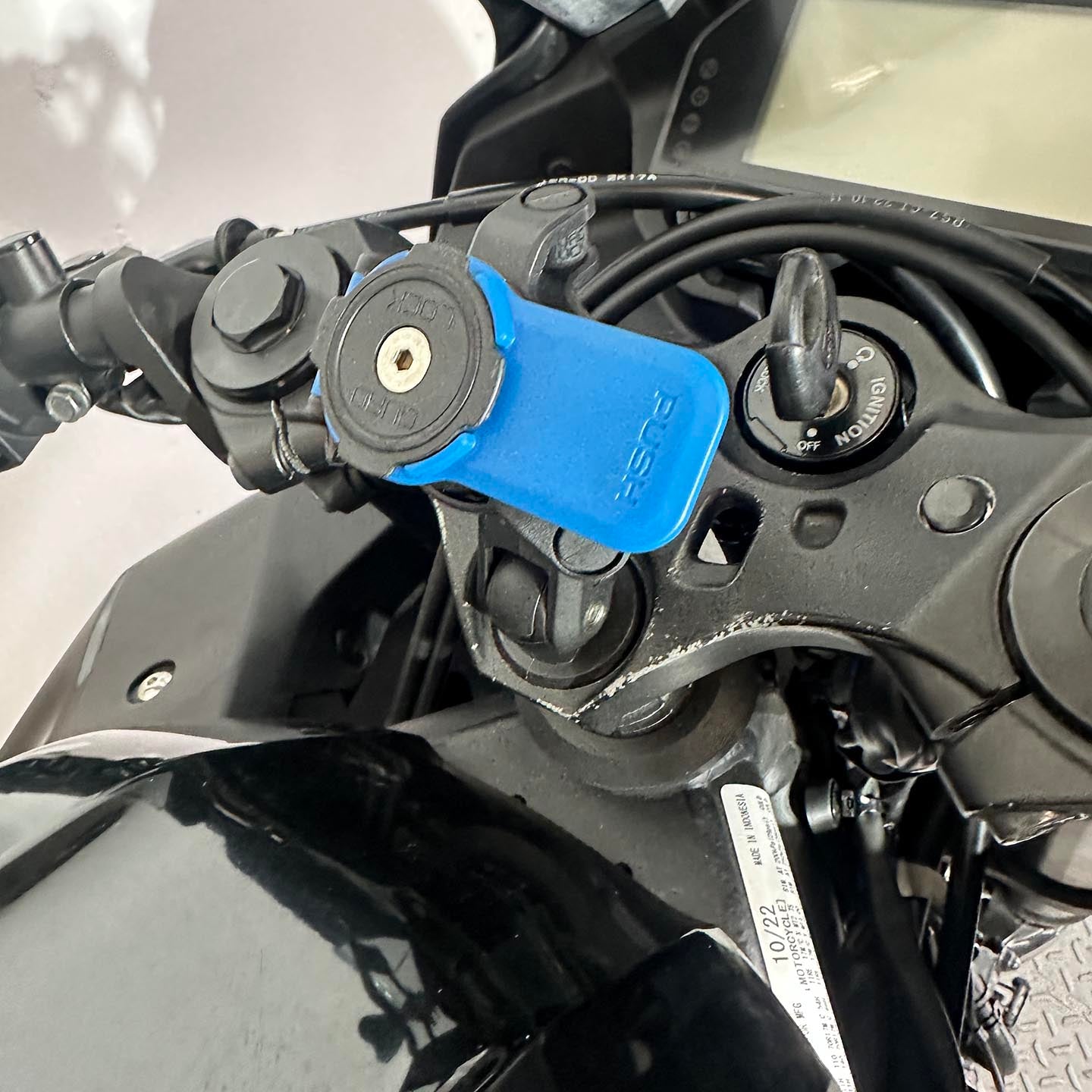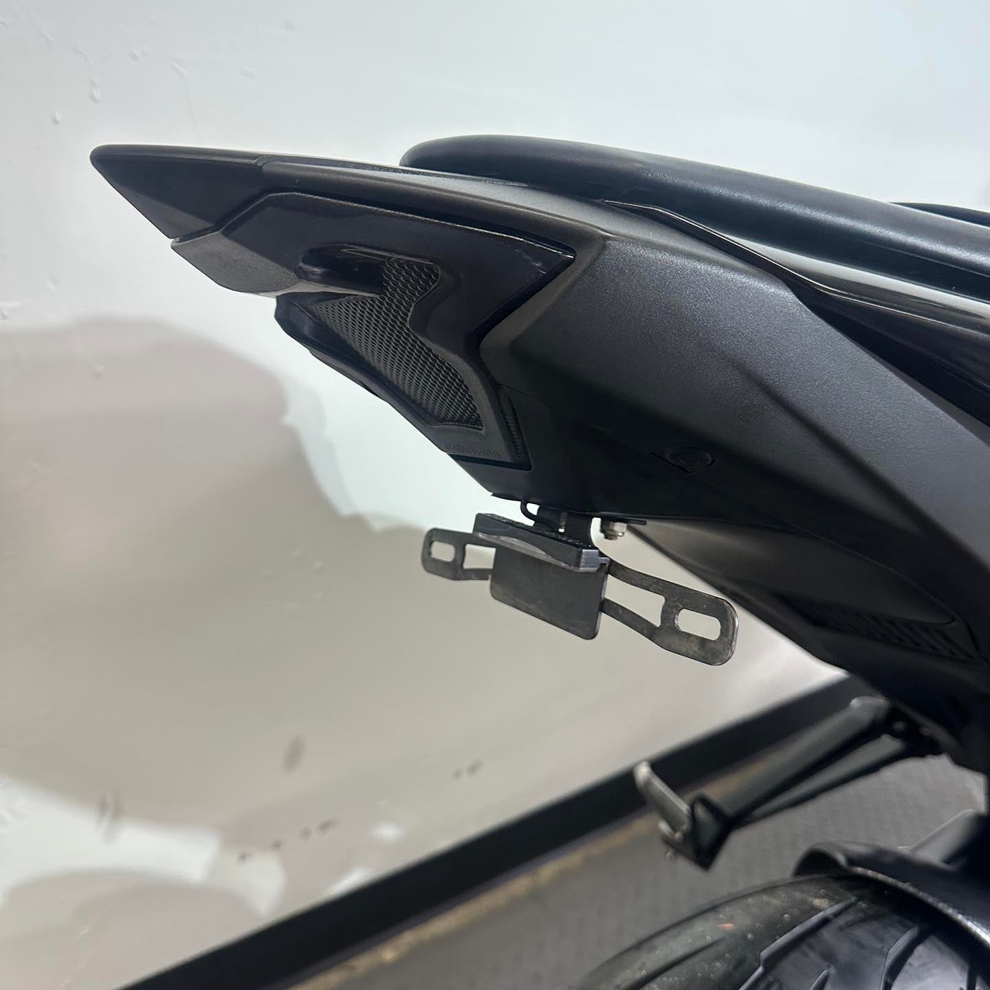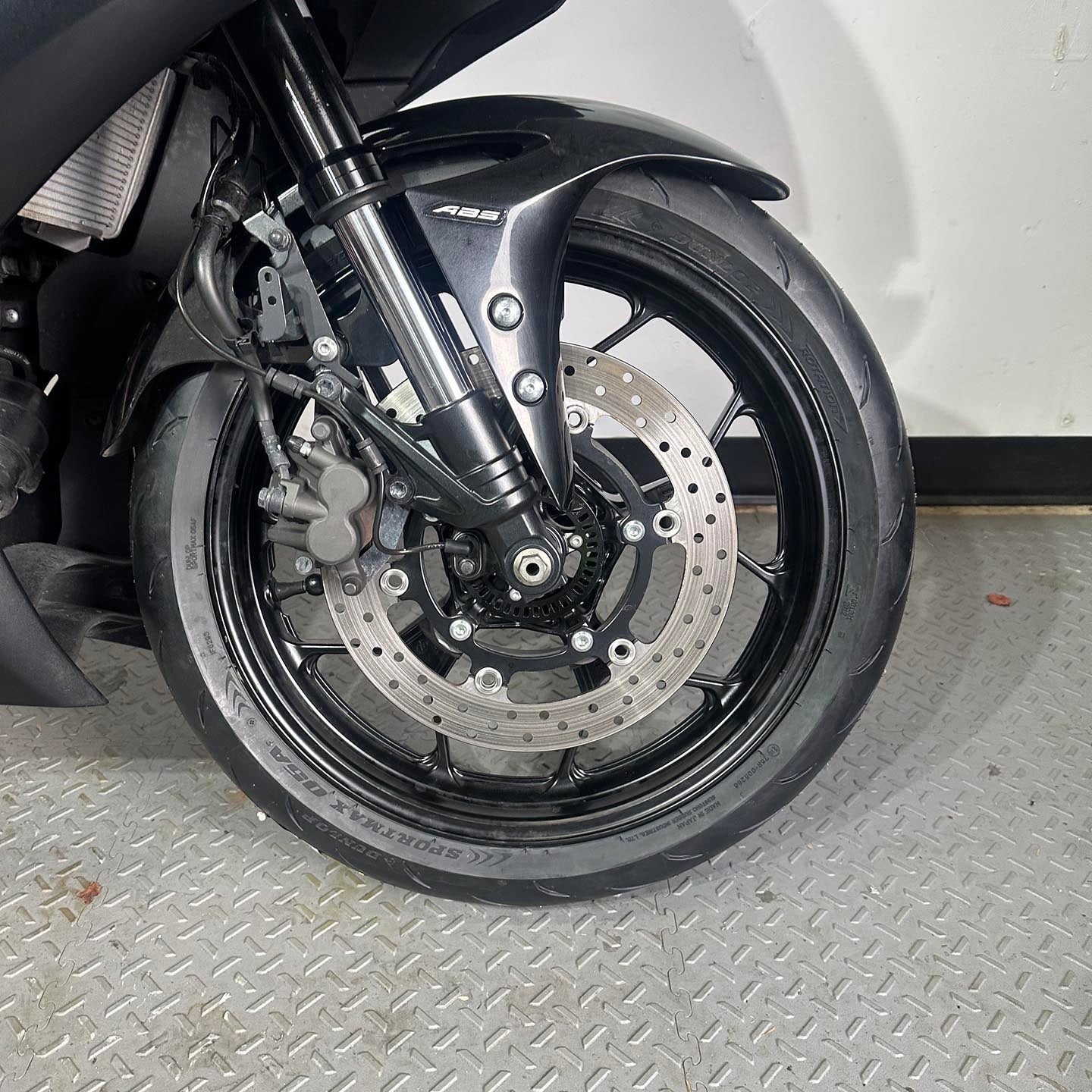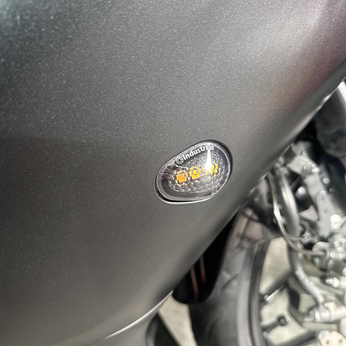 This specific motorcycle has a full Arrow exhaust system installed with refreshed ECU. A brand new set of Dunlop Q5A tires have been installed, very nice. A TST Industries integrated tail light and fender eliminator kit have been installed. Flush mount front turn signals from TST have also been fitted. A quad lock phone mount with vibration damping is also installed.