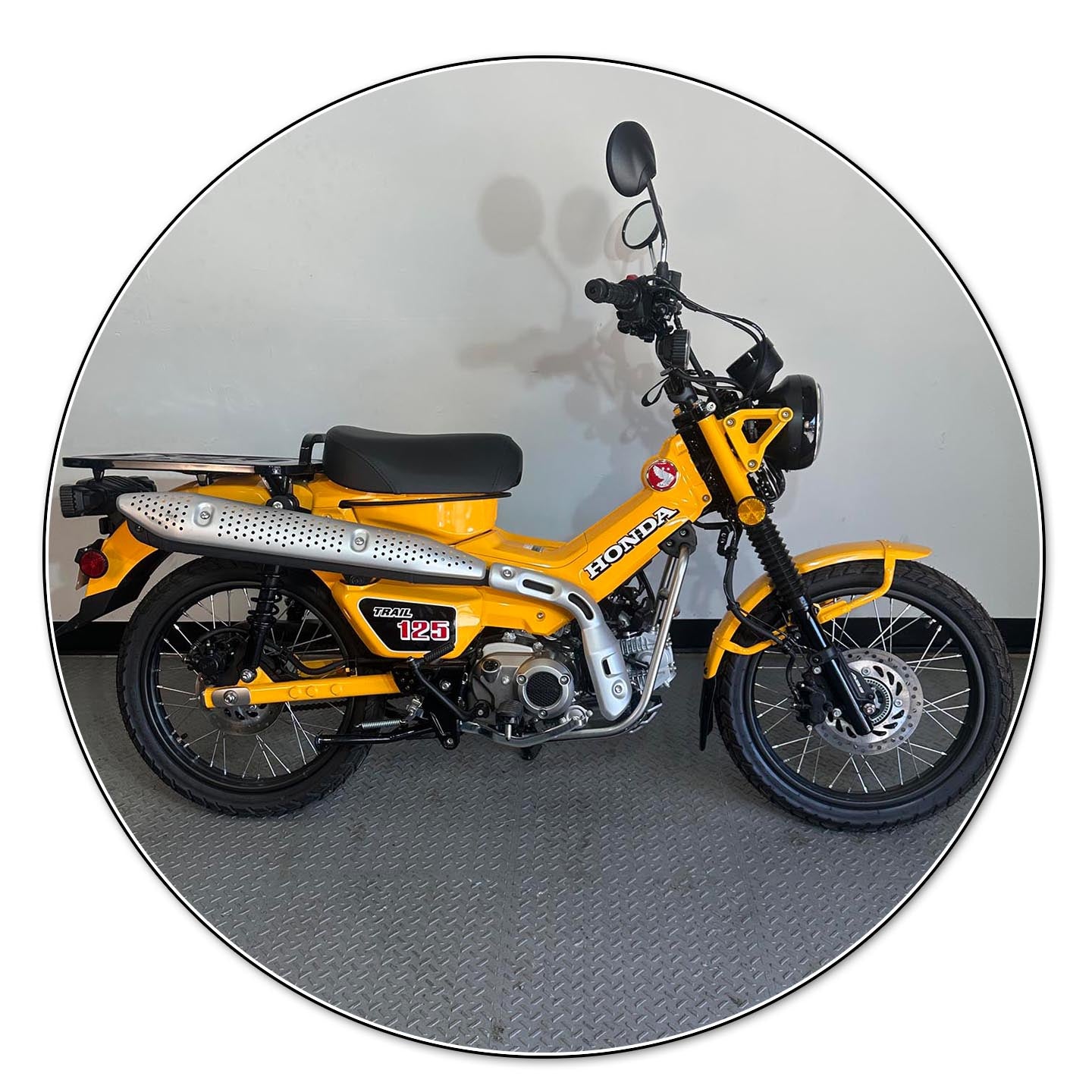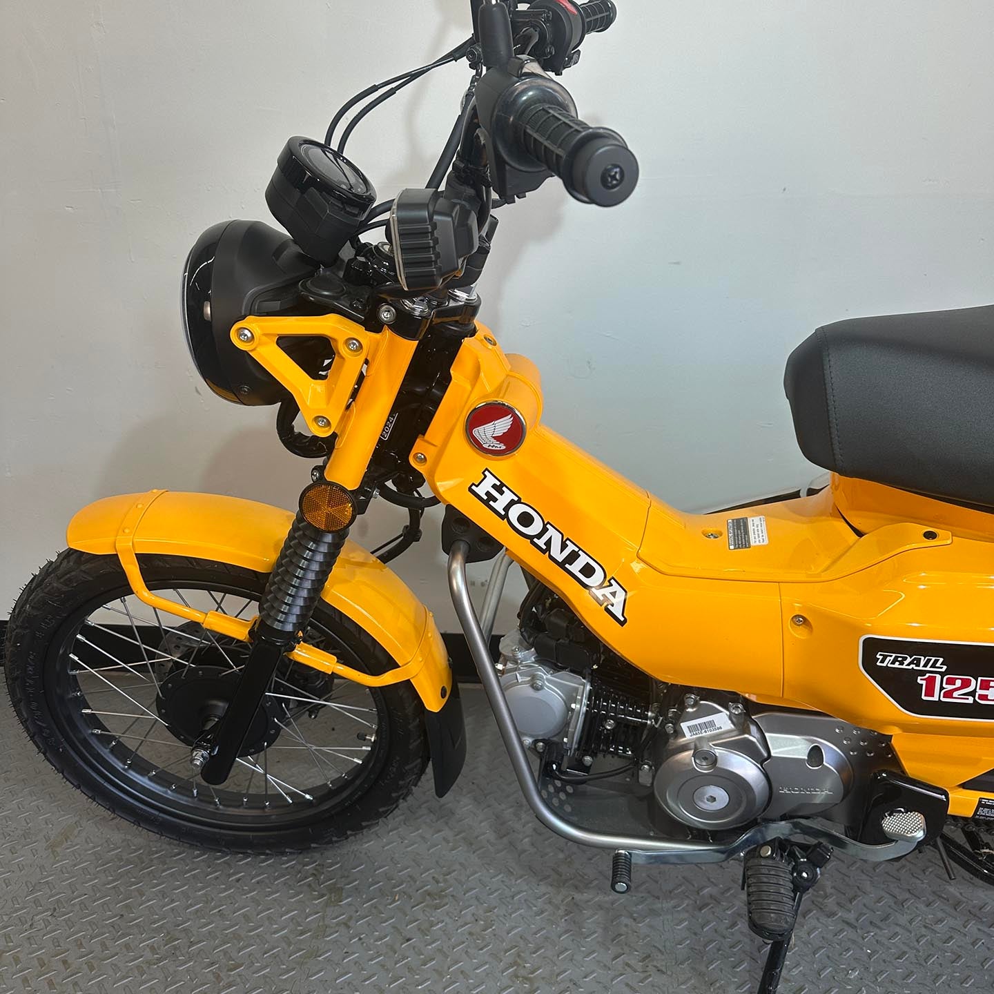 This Beautiful Tumeric Yellow 2024 Honda Trail 125 Abs is in amazing condition with only 16 miles!