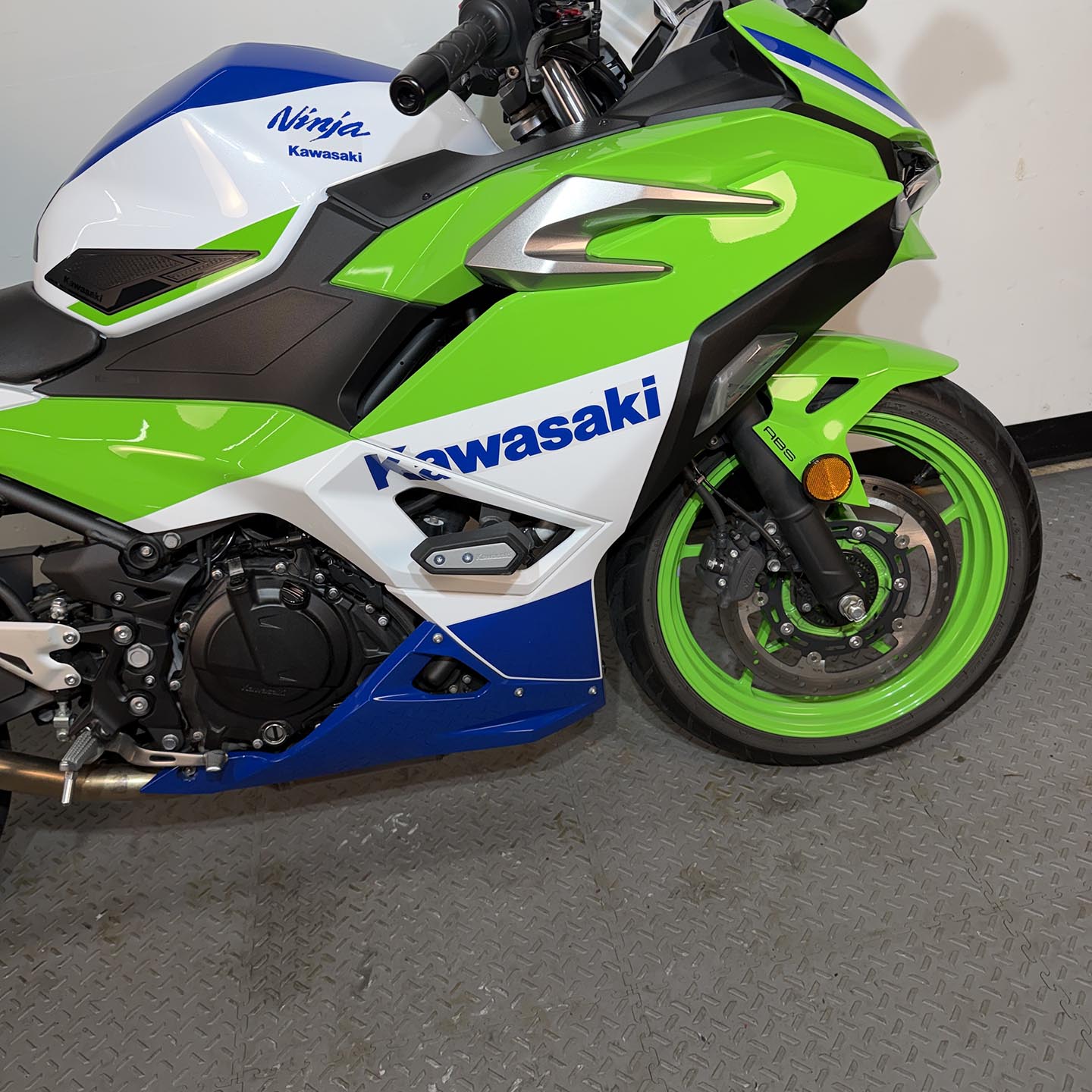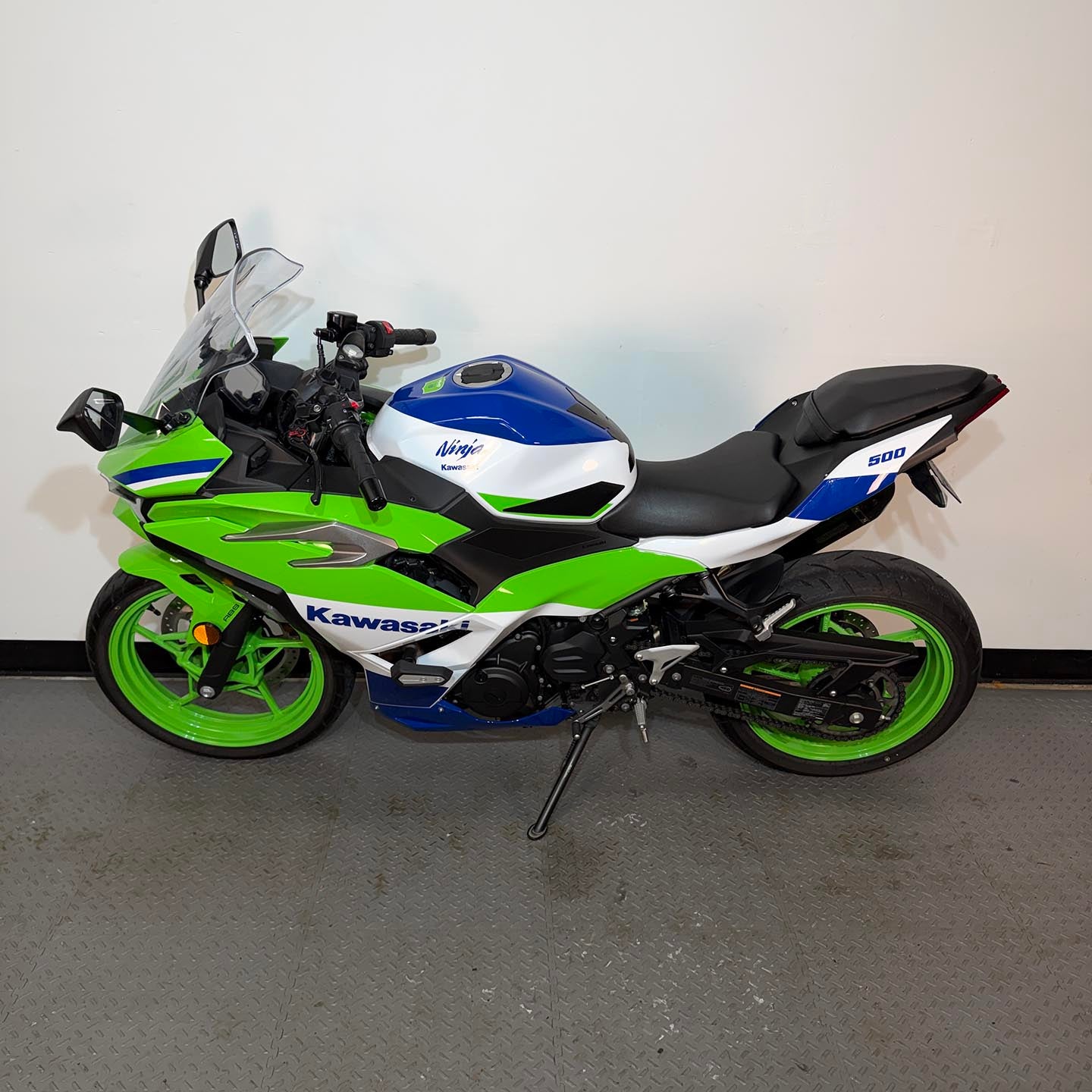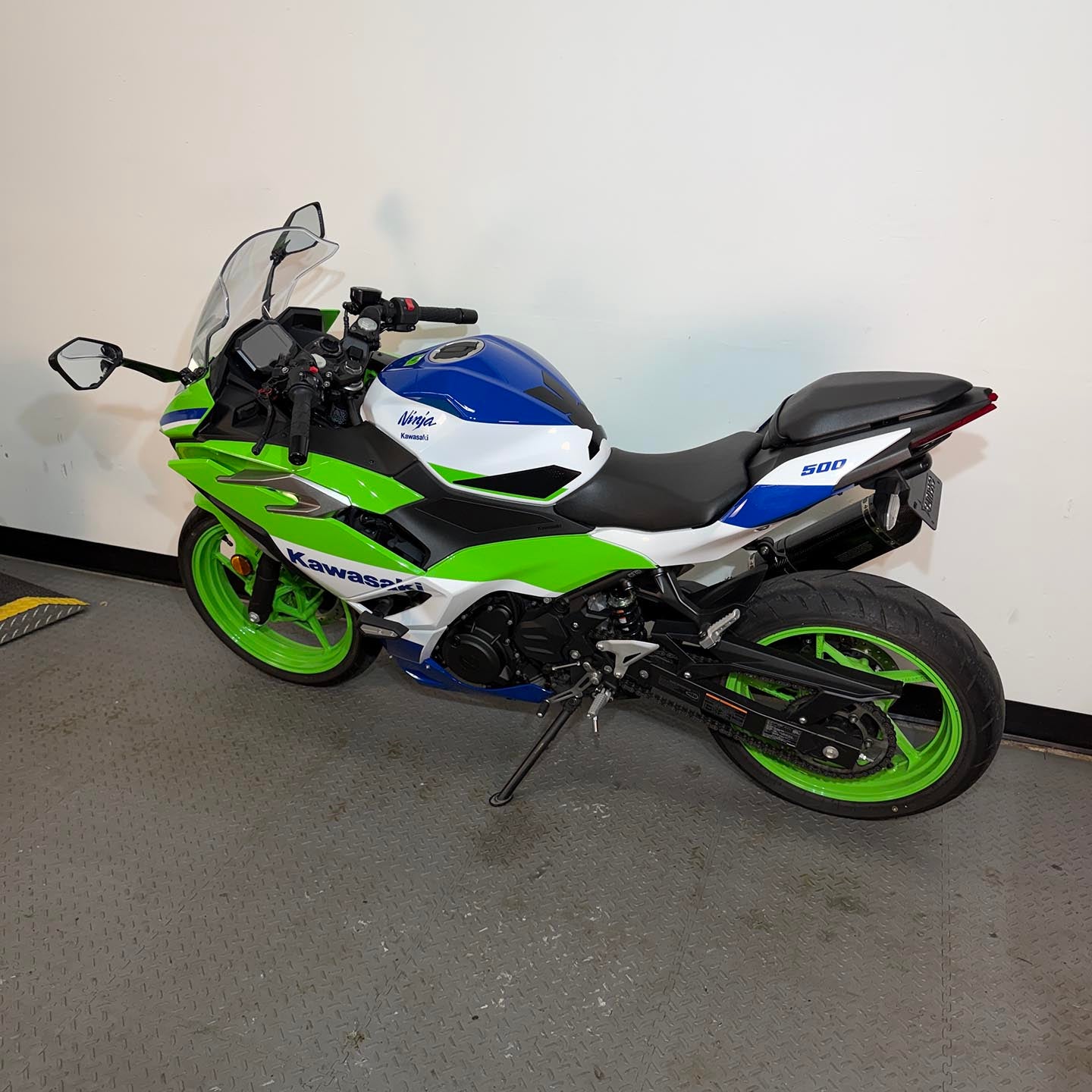 This Beautiful 2024 Kawasaki Ninja 500 SE Abs 40th Anniversary edition has Akrapovic exhaust, CRG adjustable levers and only 3,135 miles.