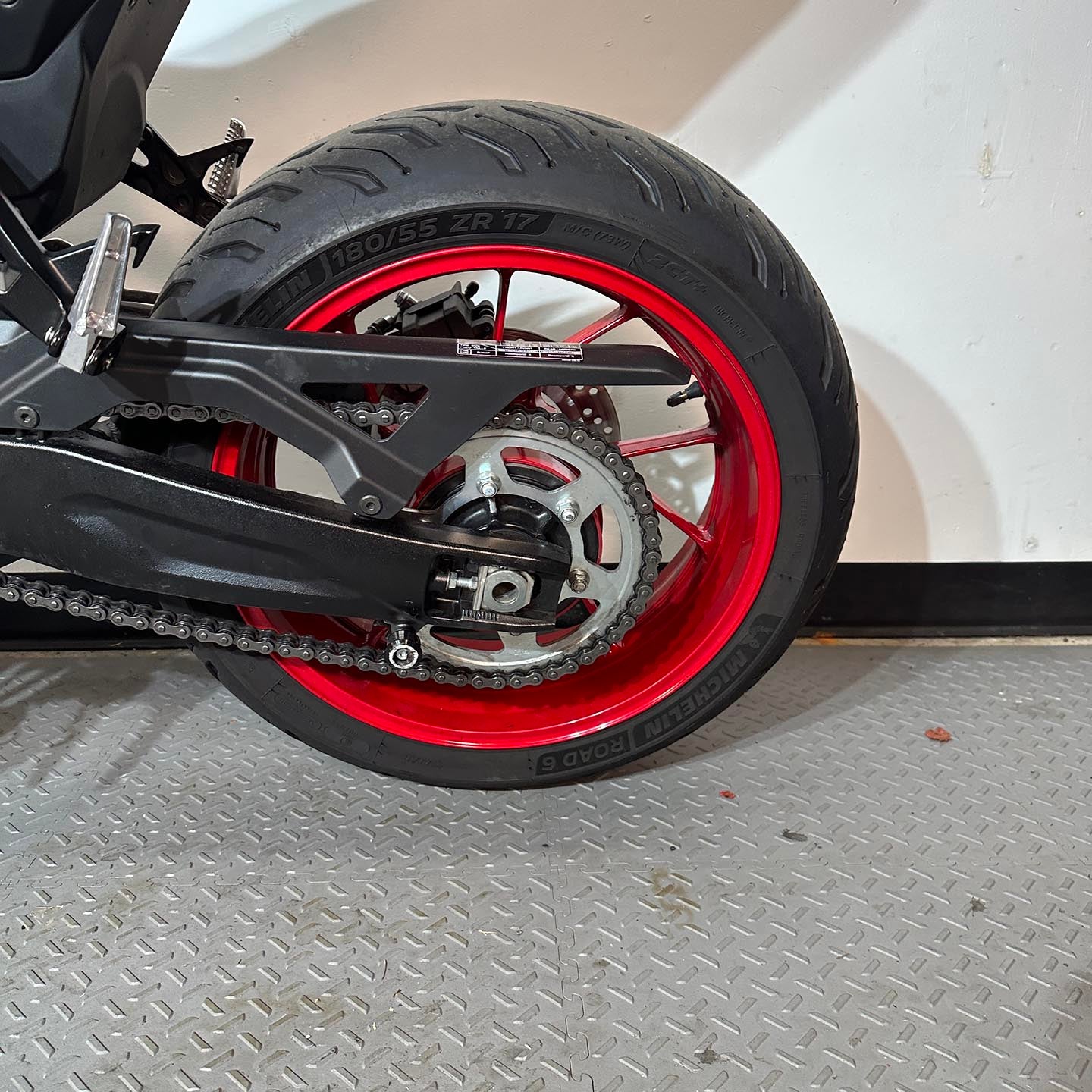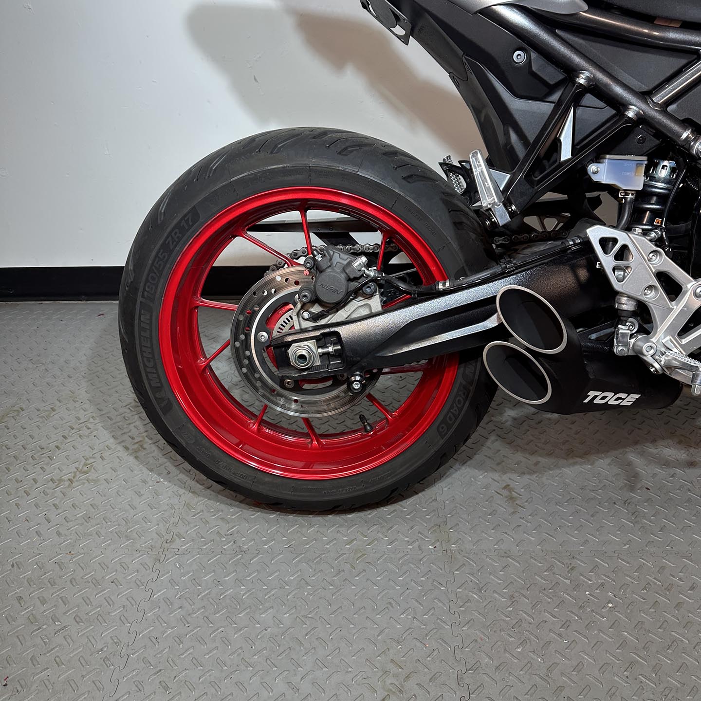 A newer set of Michelin Pilot Road 6 tires are on the bike, perfect for riding year round in all types of road conditions.