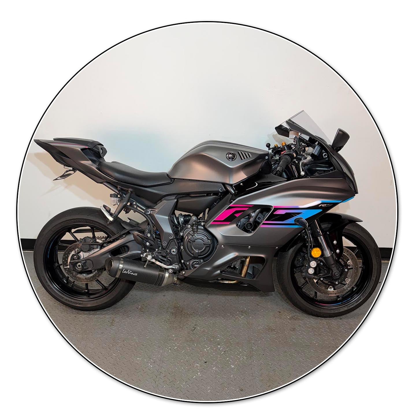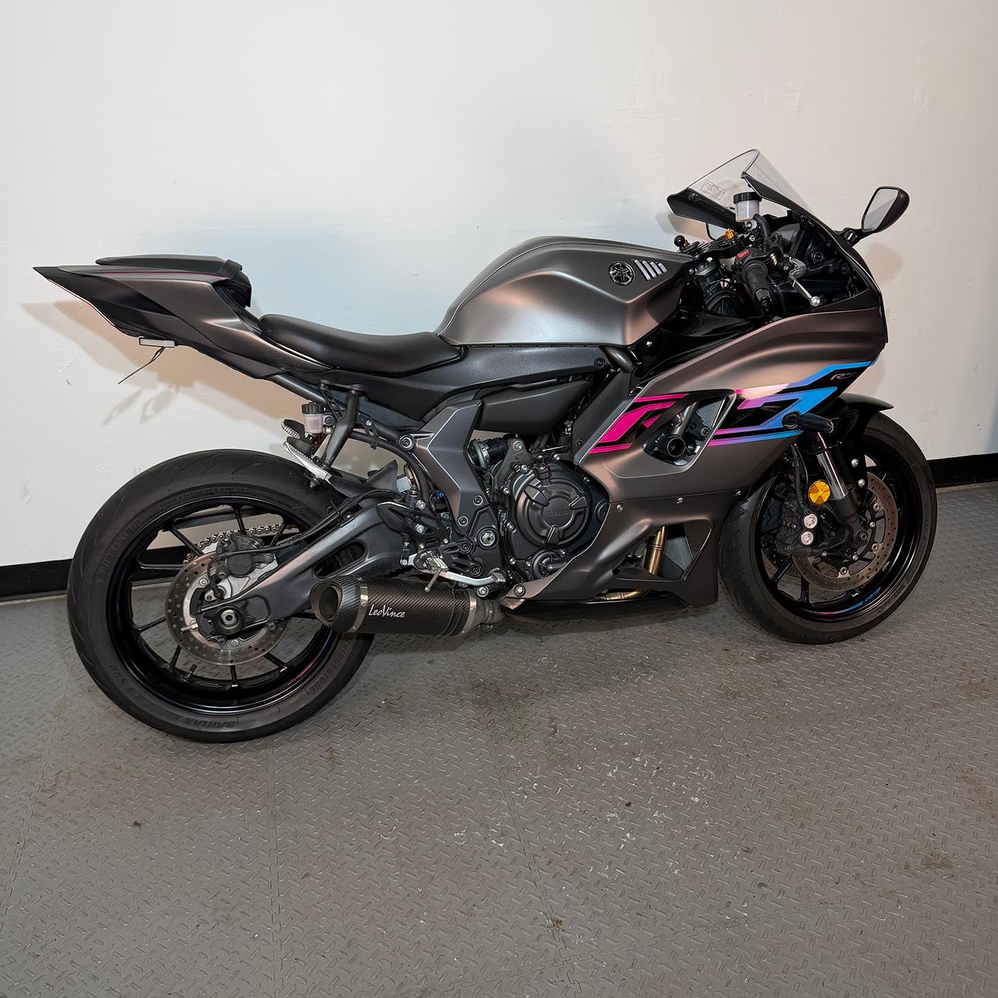 This is your chance to get a nicely upgraded 2024 Yamaha YZF R7 with Full Leo Vince exhaust at a great value. Reserve it today!