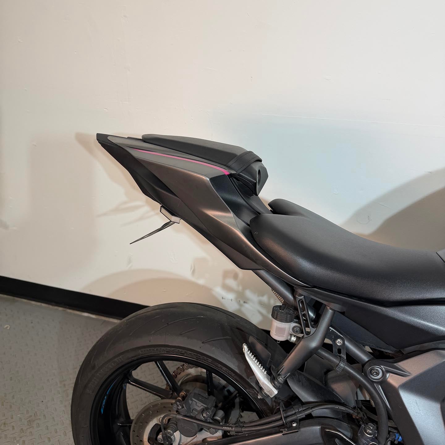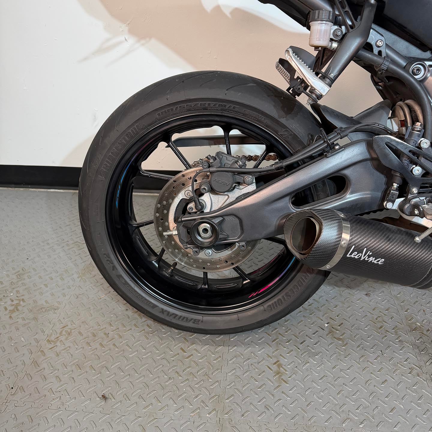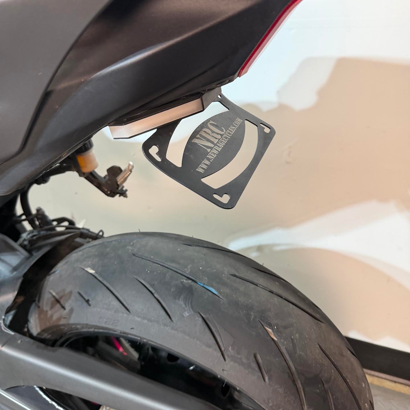 This specific motorcycle has a Leo Vince LV One Evo full race exhaust installed. Very nice. It also has a NRC fender eliminator/tail tidy installed.